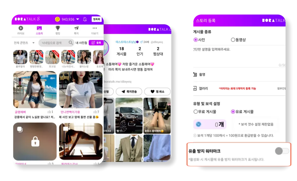유료 게시물 등록 시 게시물에 유출 방지 워터마크를 설정할 수 있어 캡처 및 유출 걱정은 하지 않아도 돼요