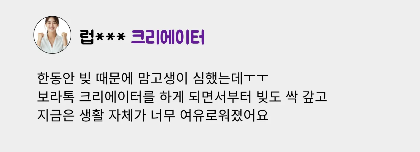 보라톡에서 크리에이터로 활동하고 수익을 창출해 보세요!